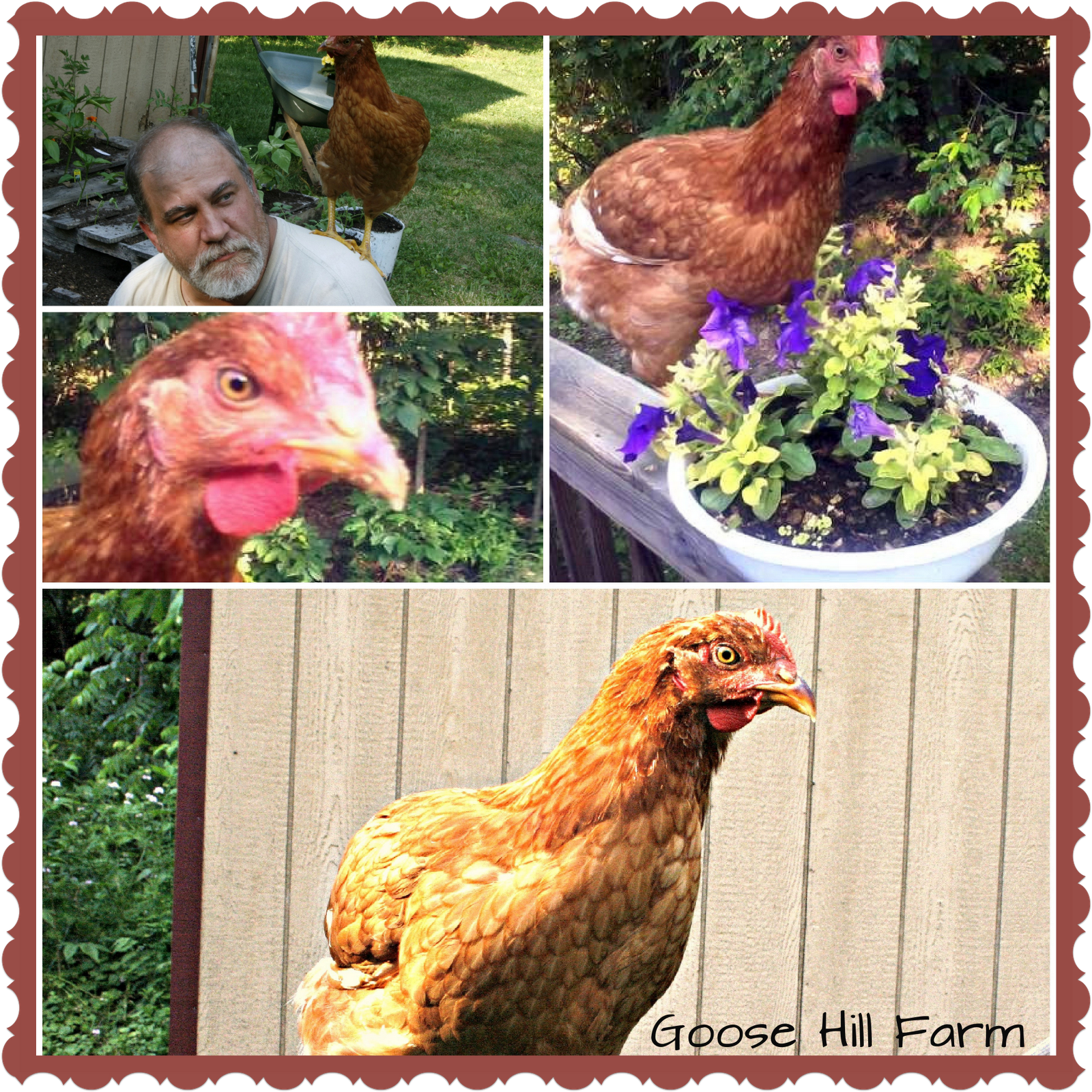 I would like you to meet the newest addition to our farm.....Freckles. She is a New Hampshire Red that we got from wonderful friends of ours. Her 30 or so sisters thought that the "freckles" on her tail were bugs and kept pecking at them and pulling out her tail feathers. I am so glad that we were able to take her home with us.